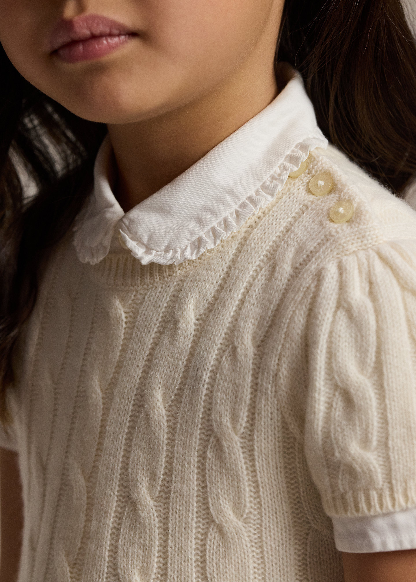 - Puffed short sleeves with rib-knit armbands.