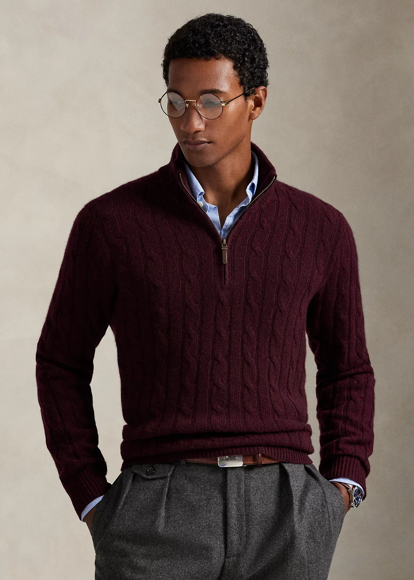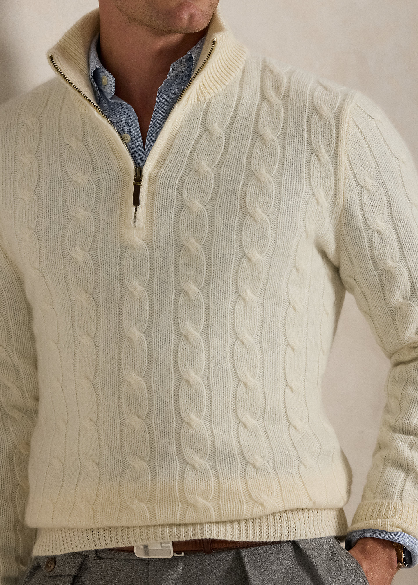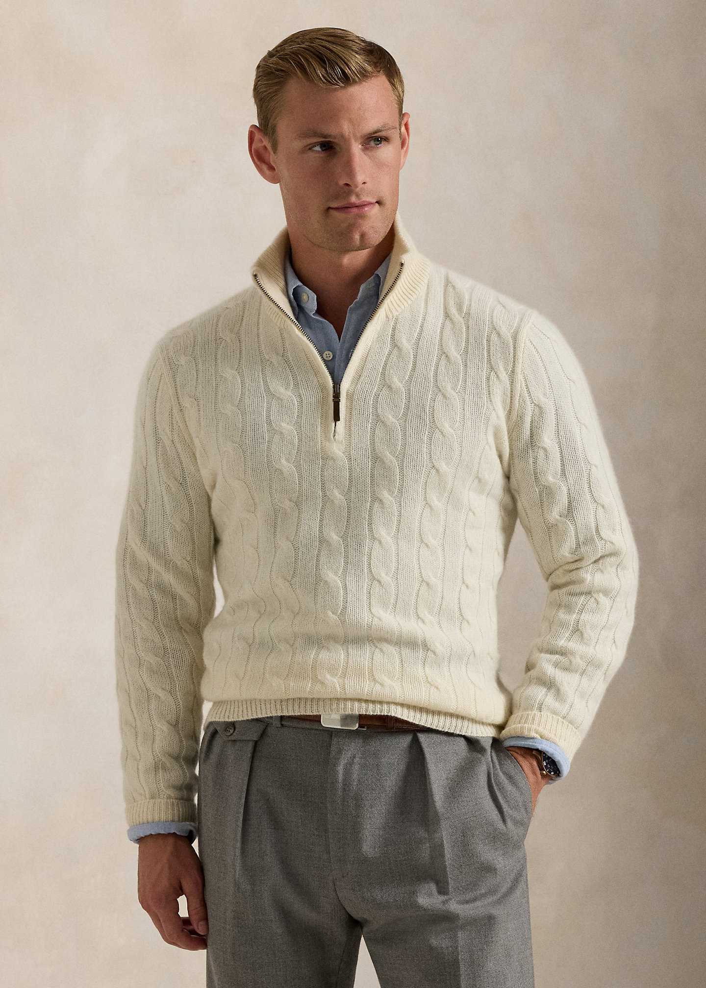 Cable-Knit Cashmere Quarter-Zip Sweater