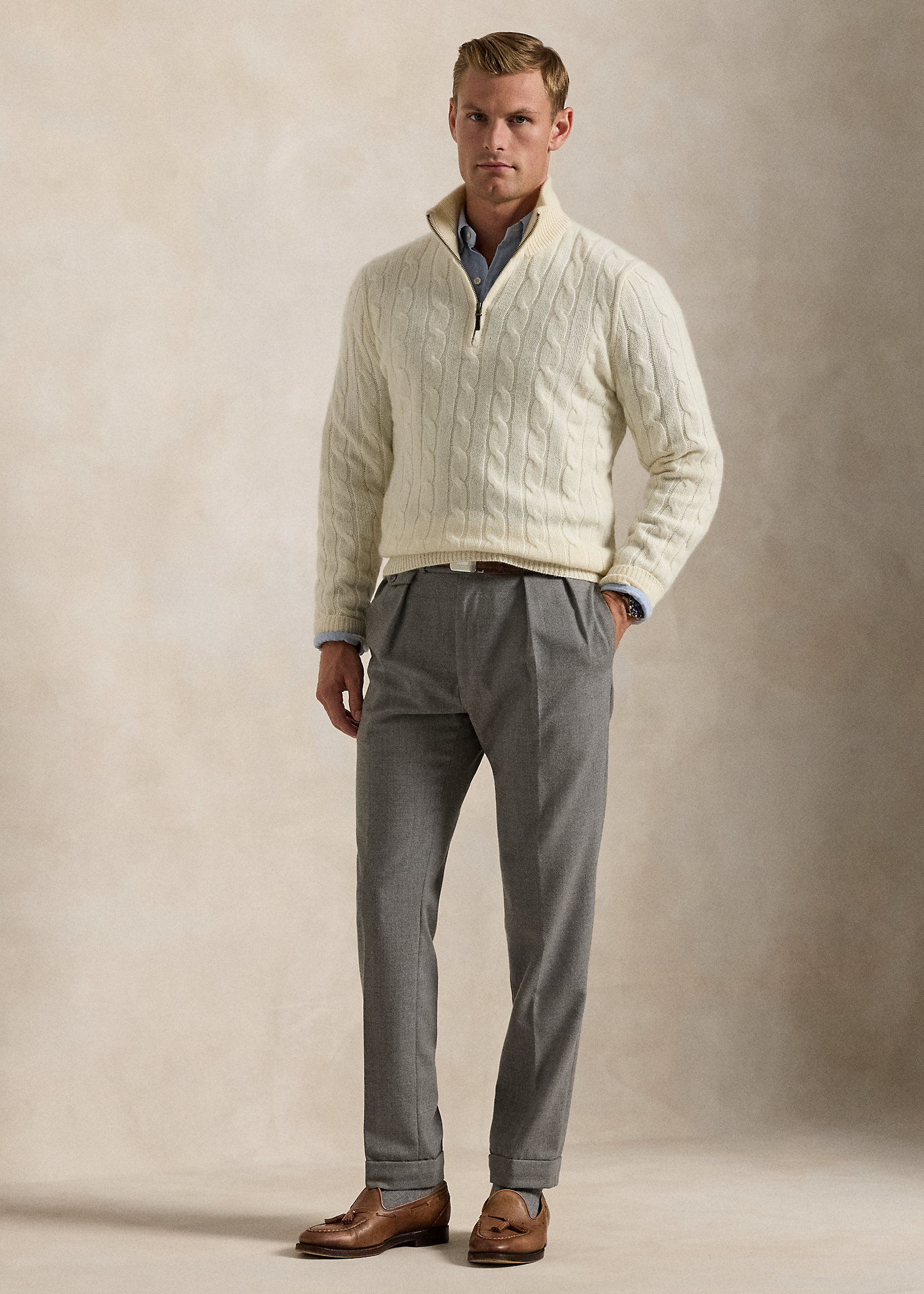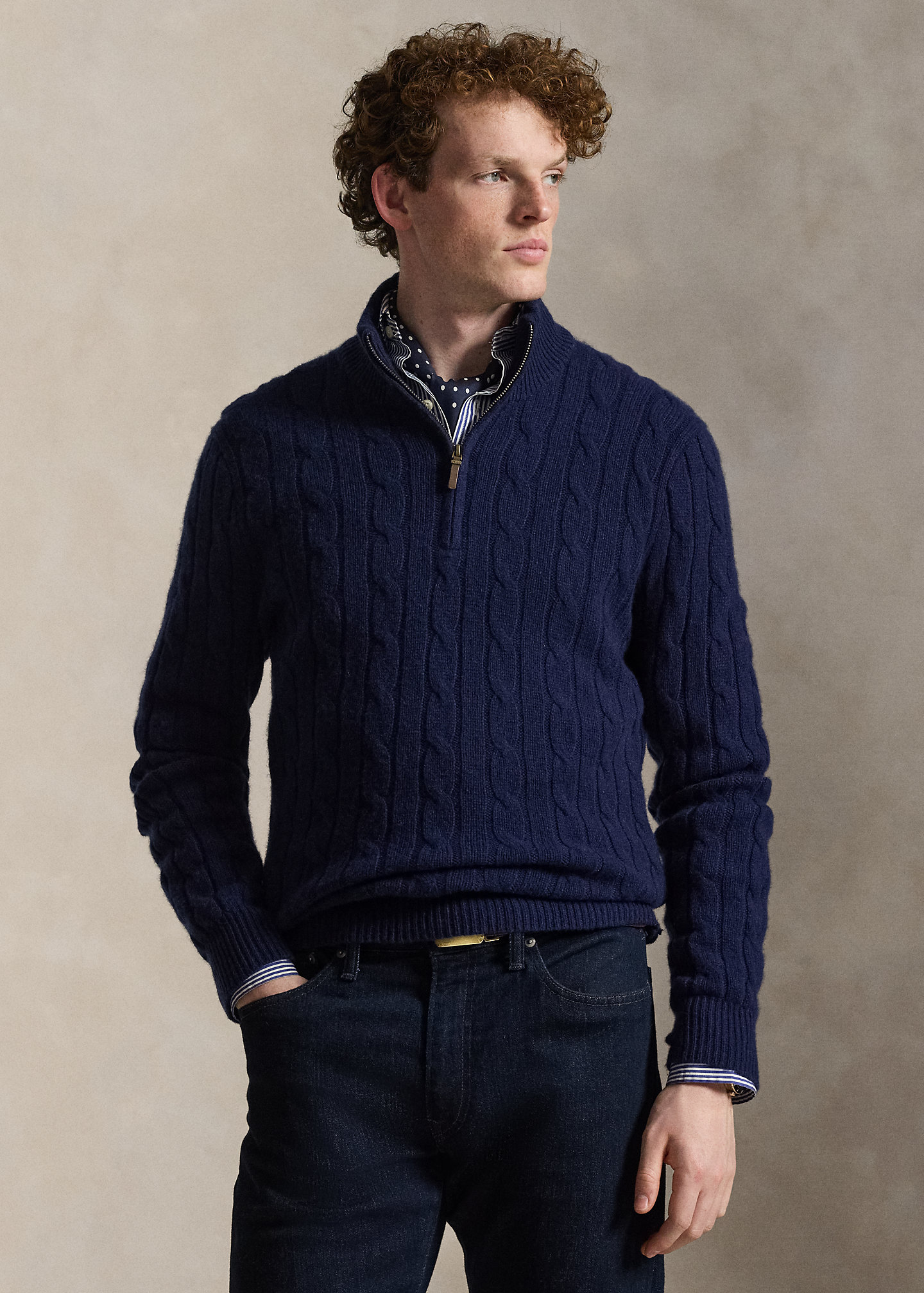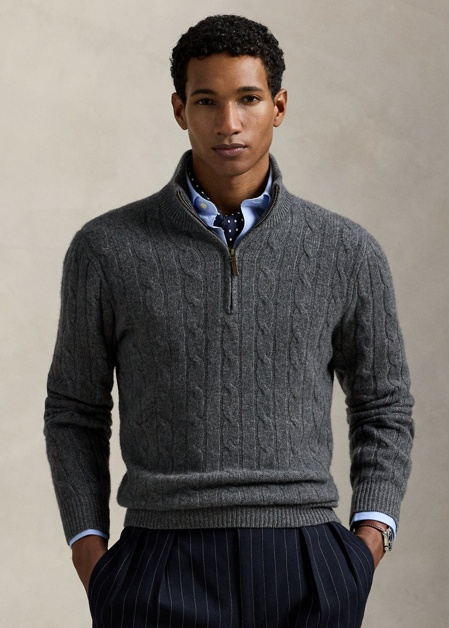 Cable-Knit Cashmere Quarter-Zip Sweater