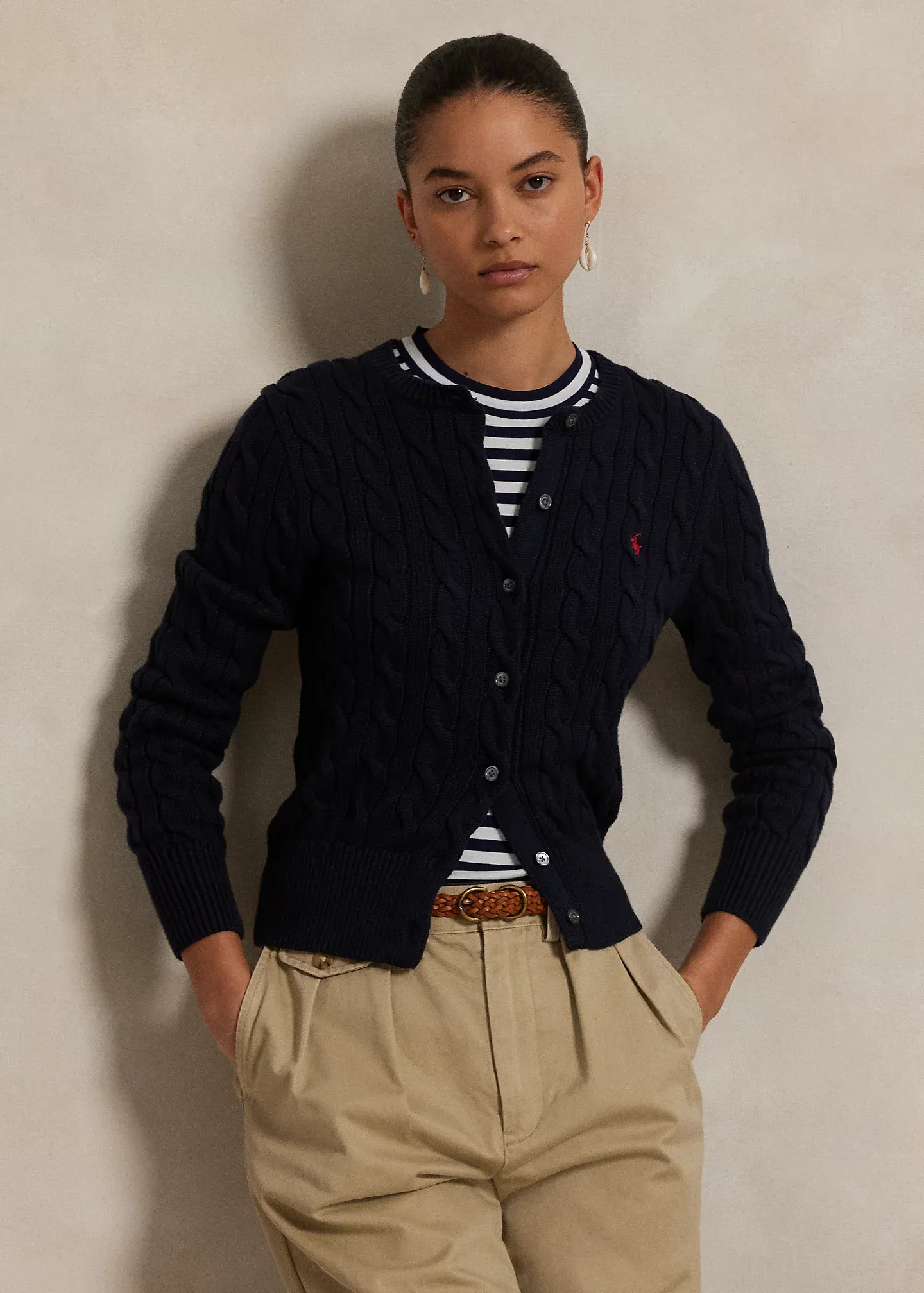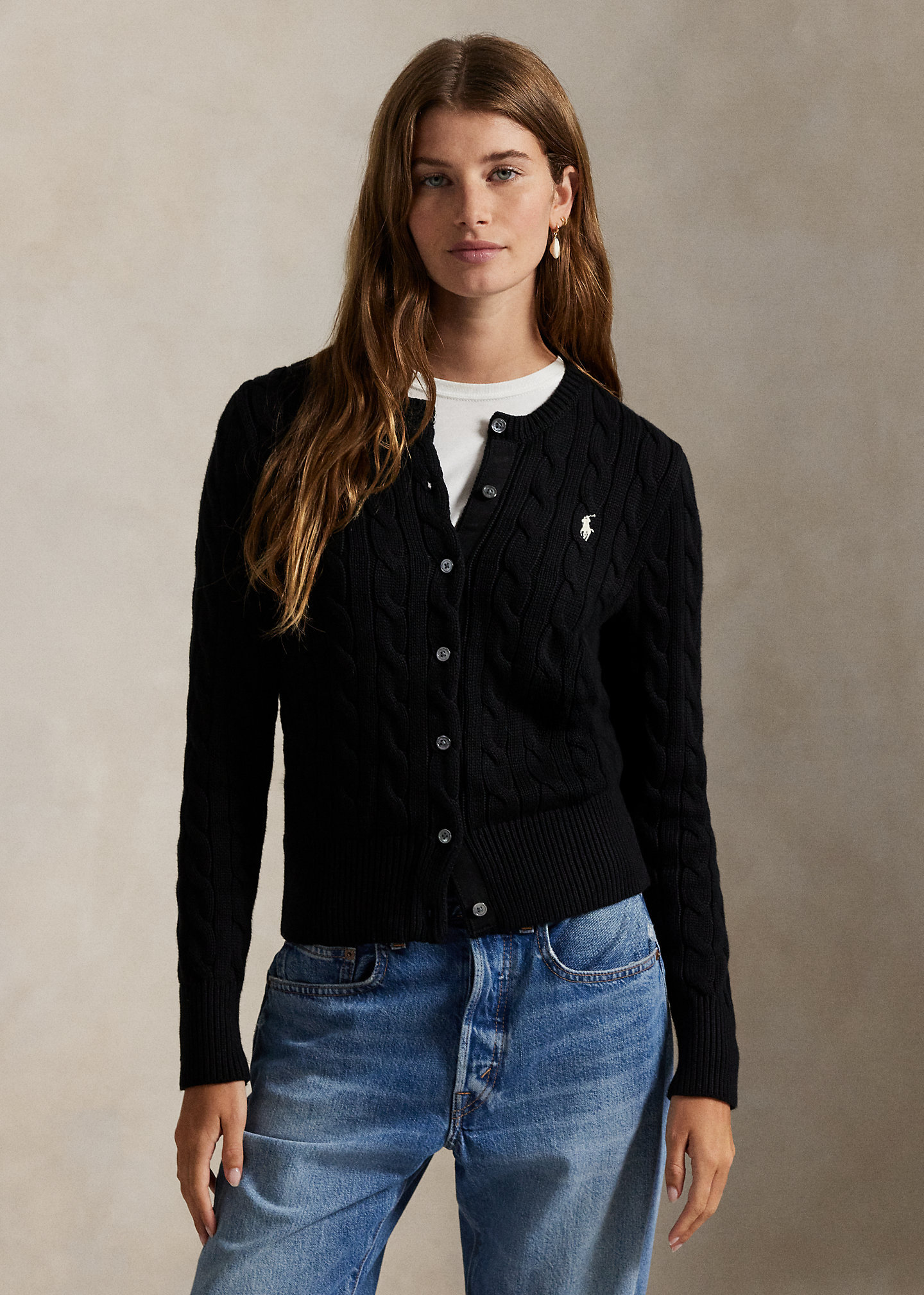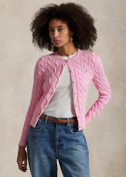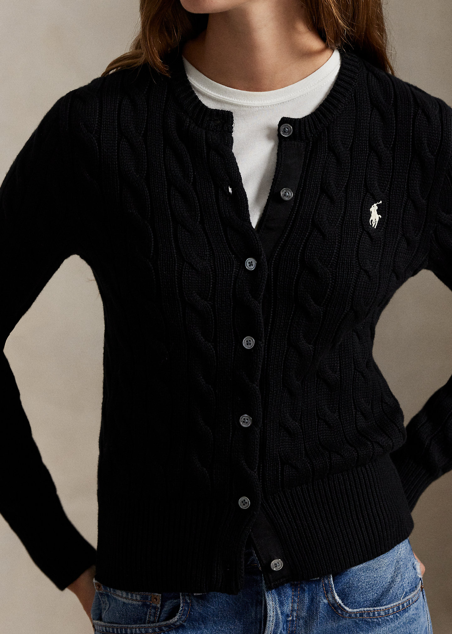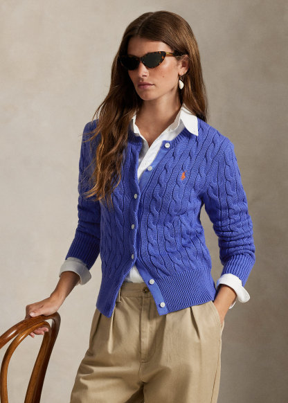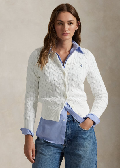 Cable-Knit Cotton Crewneck Cardigan