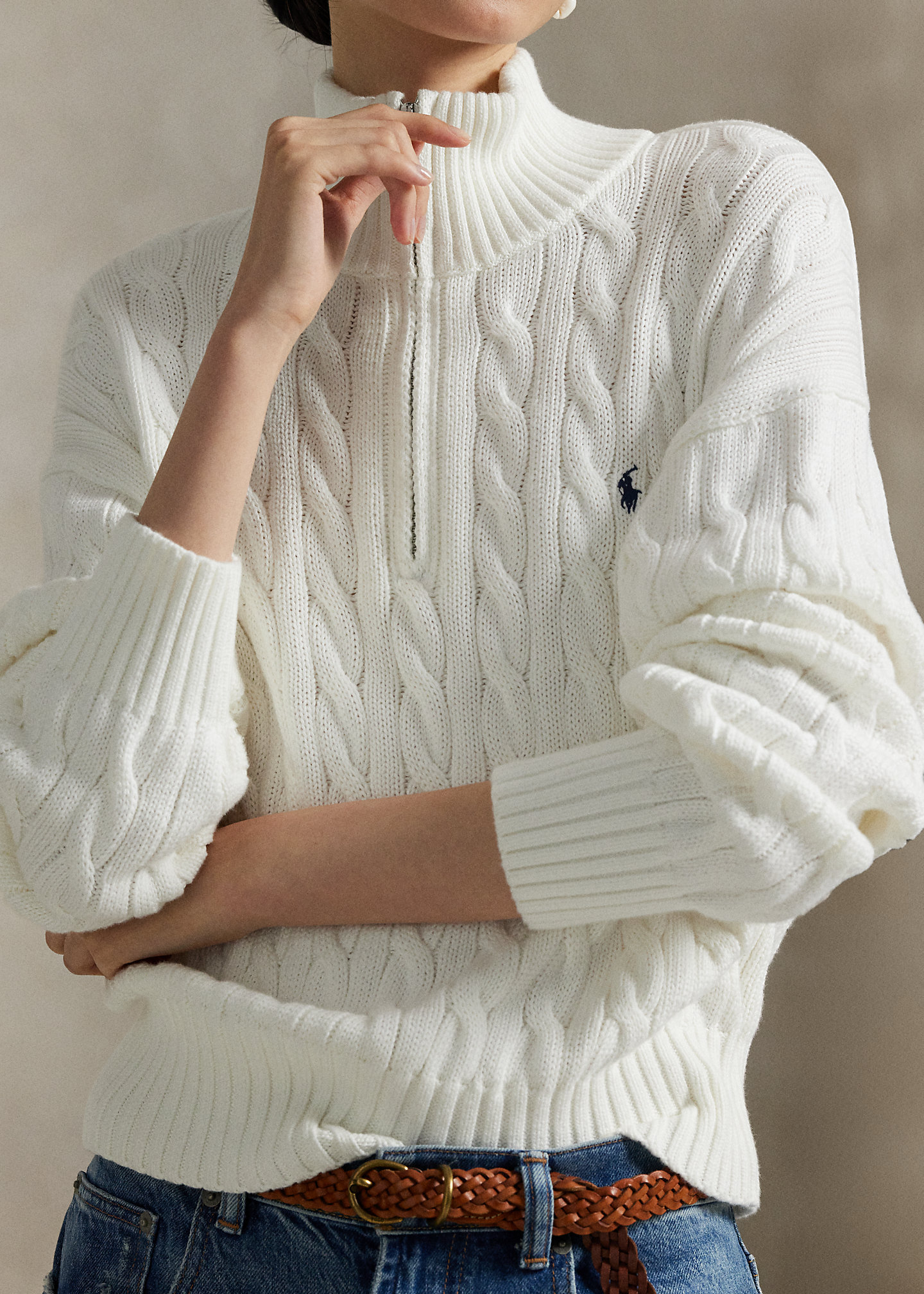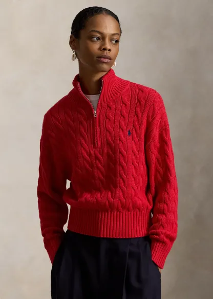 Cable-Knit Cotton Quarter-Zip Sweater
