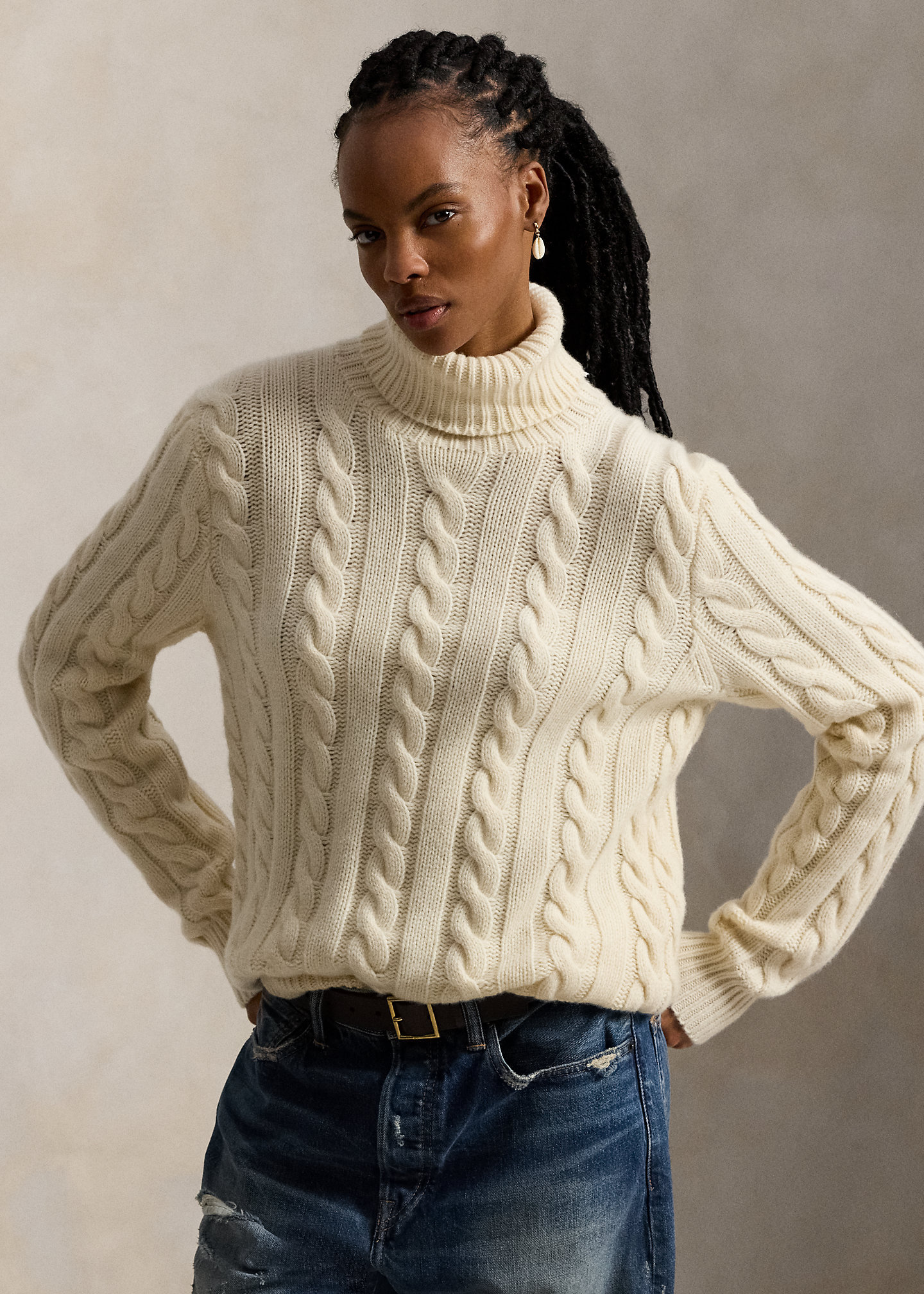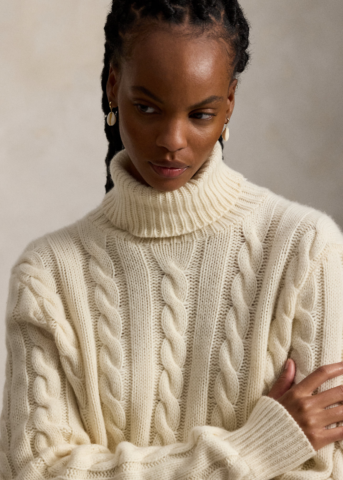 - Rib-knit turtleneck.