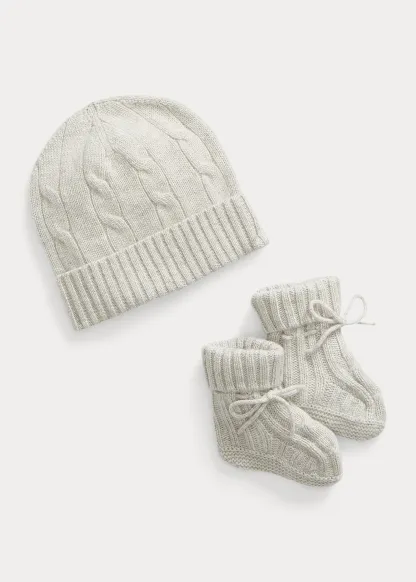 - Bootie: fold-over cuff; cord woven through and tied at each ankle; textured knit sole with an extra layer of purl-knit cashmere.