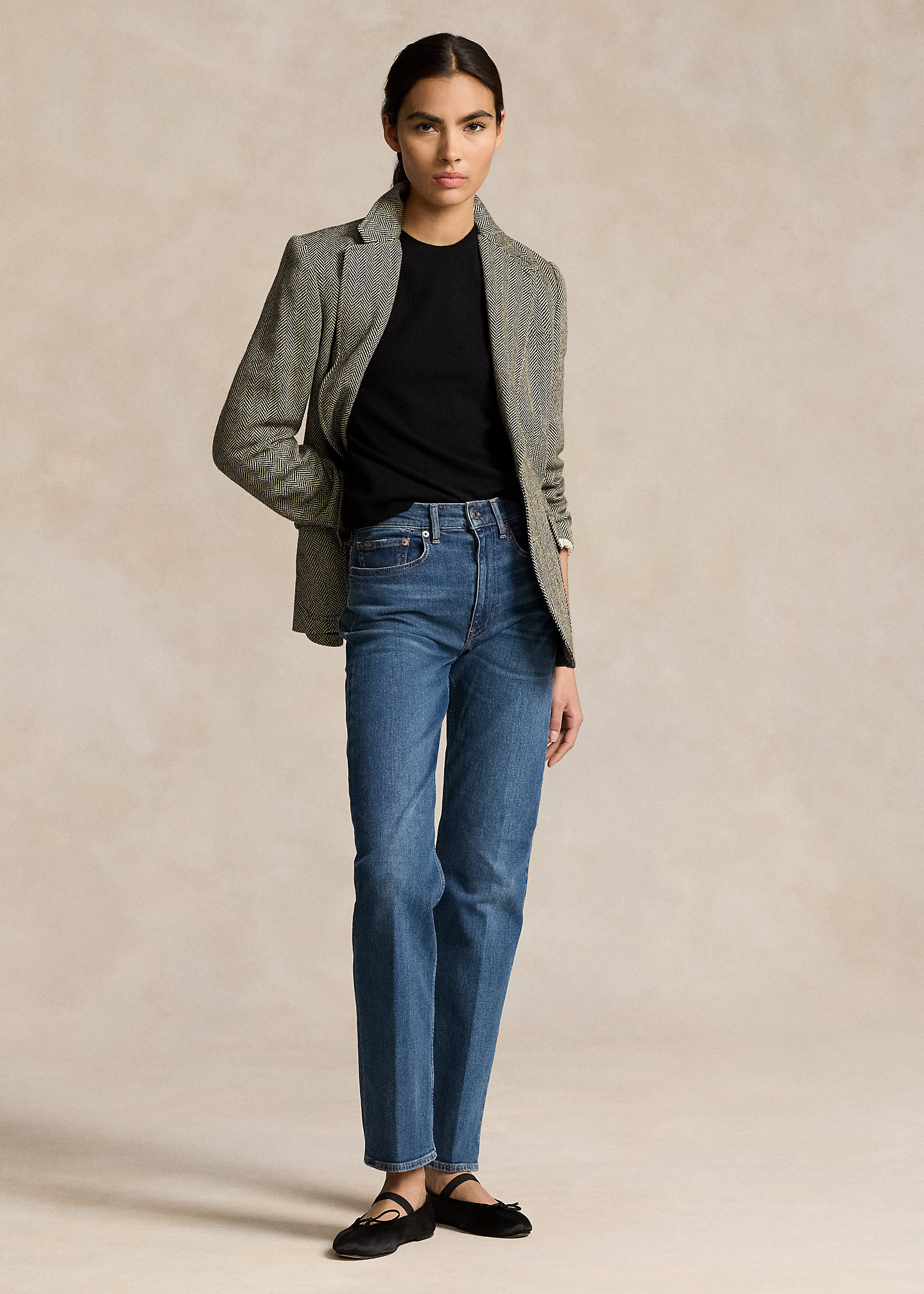 - Slightly relaxed fit. Fitted at the waist. Intended to hit at the hip.