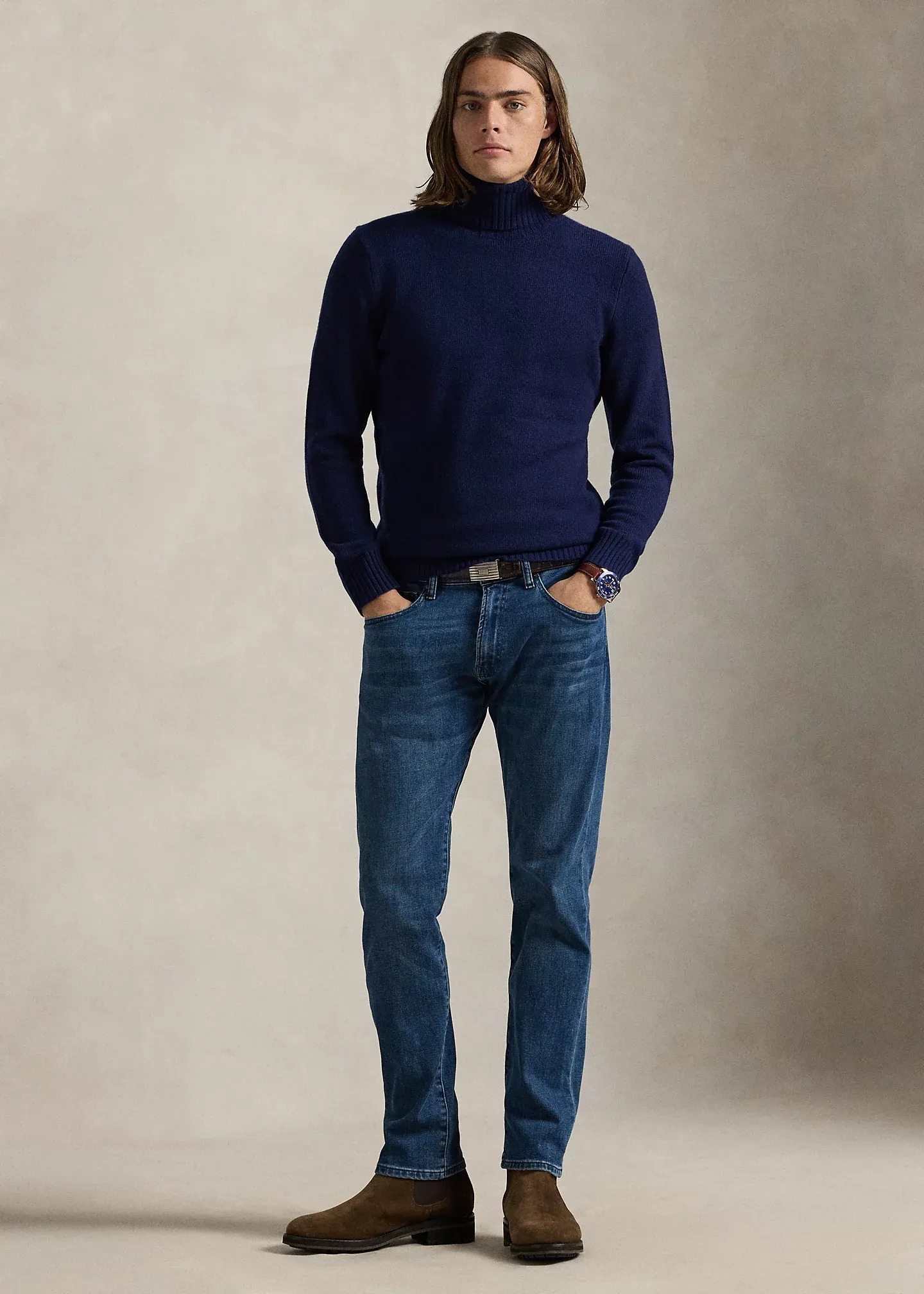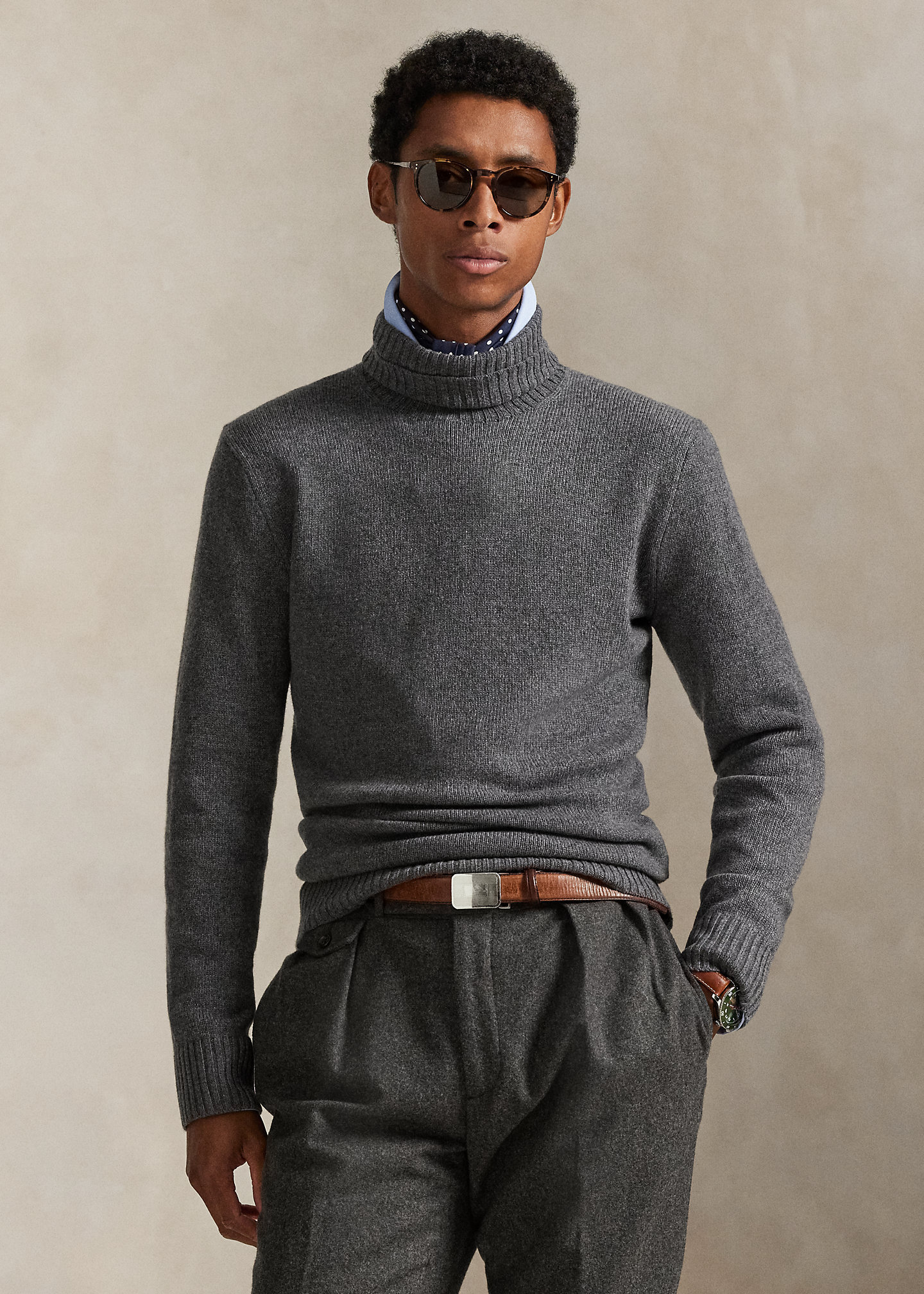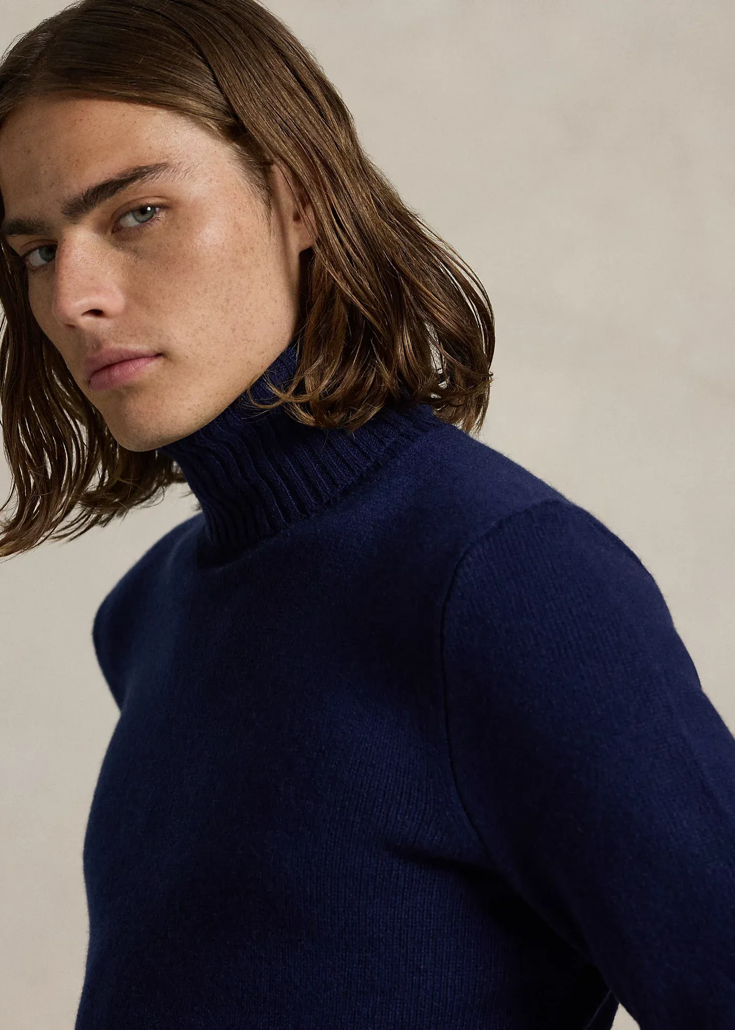 - Rib-knit turtleneck.