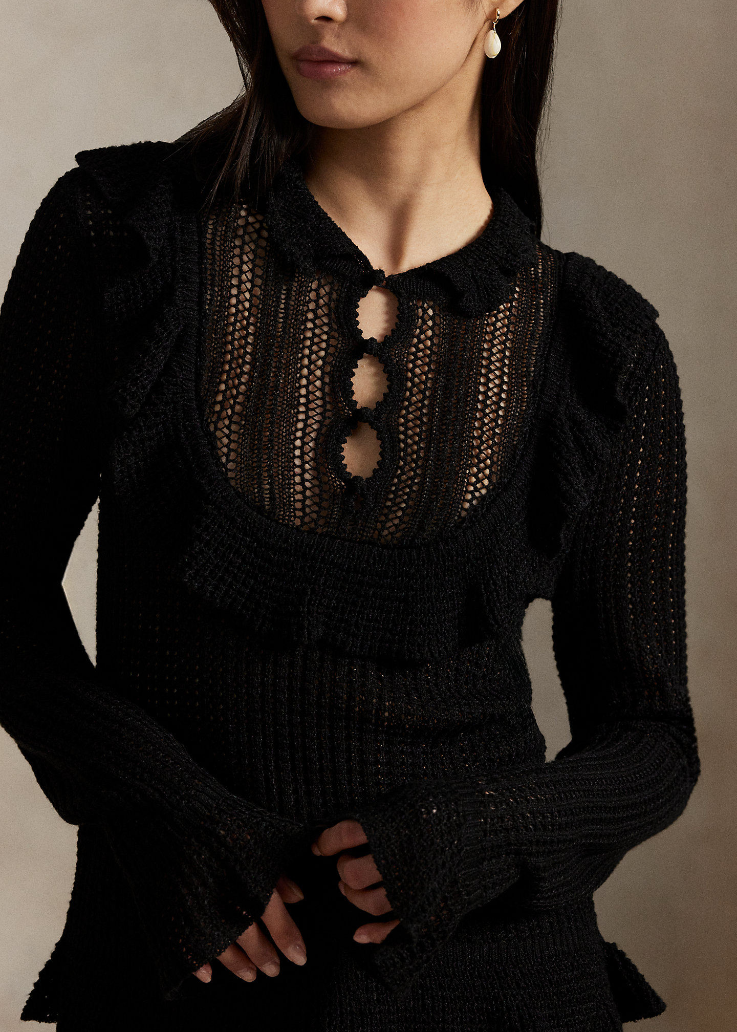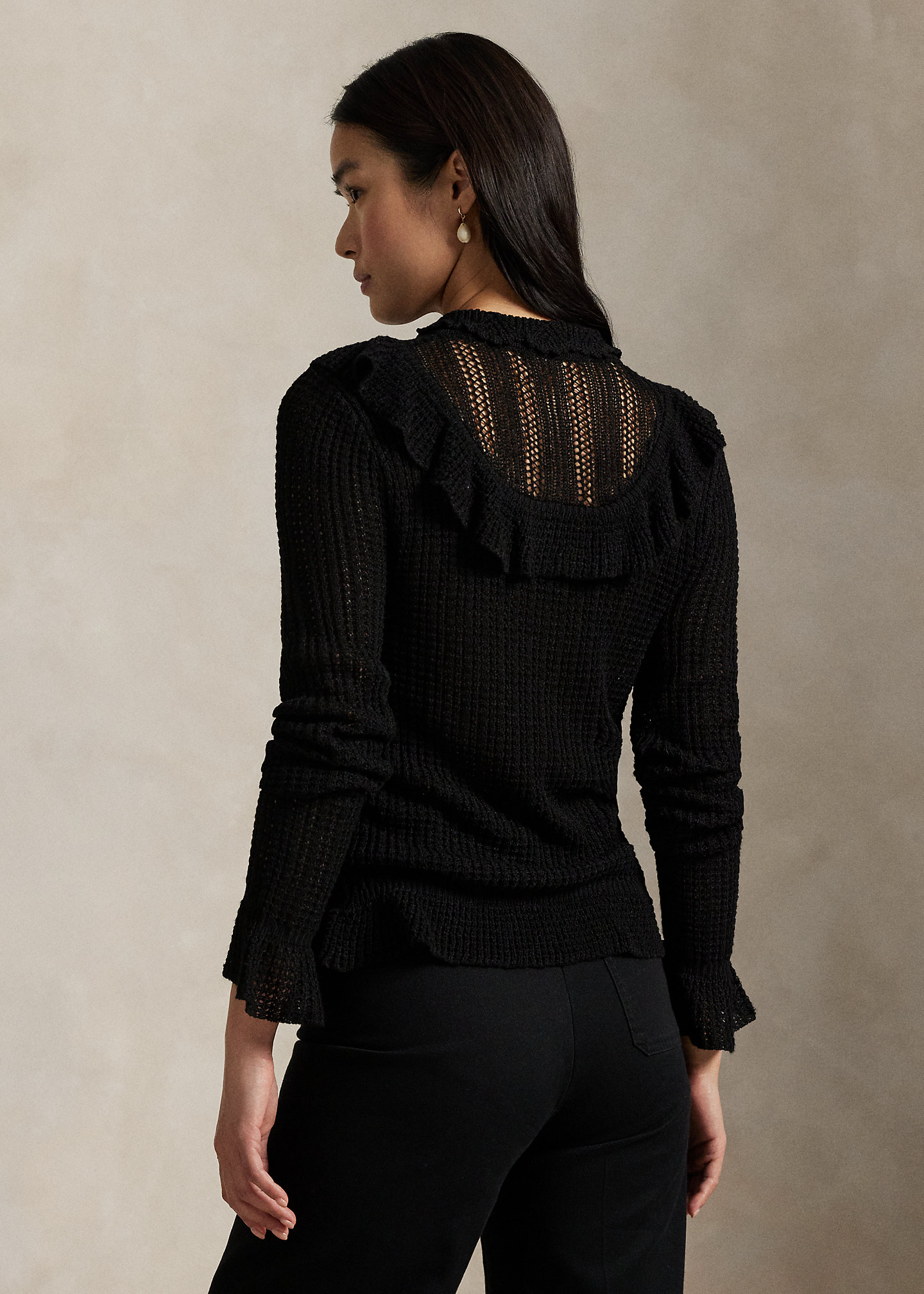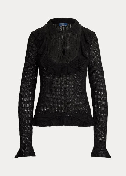 Crocheted Ruffle-Trim Sweater
