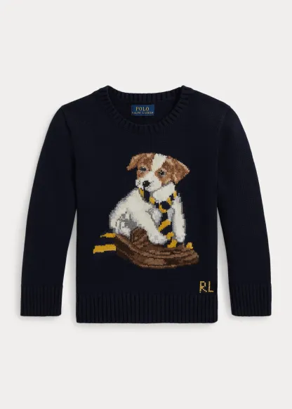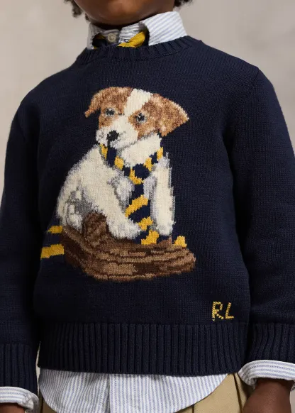 Dog-Intarsia Cotton Sweater