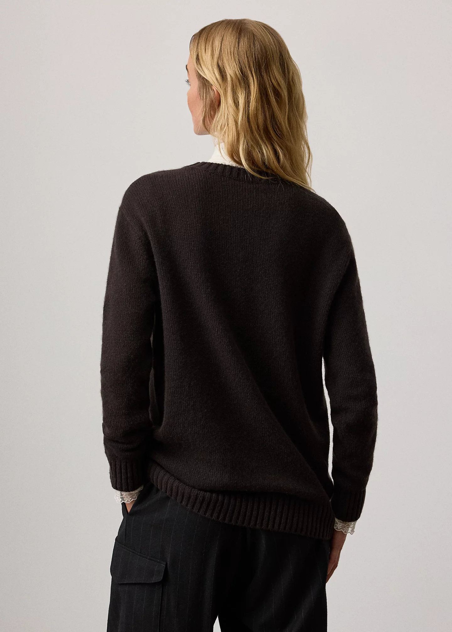 - Ribbed crewneck.