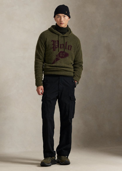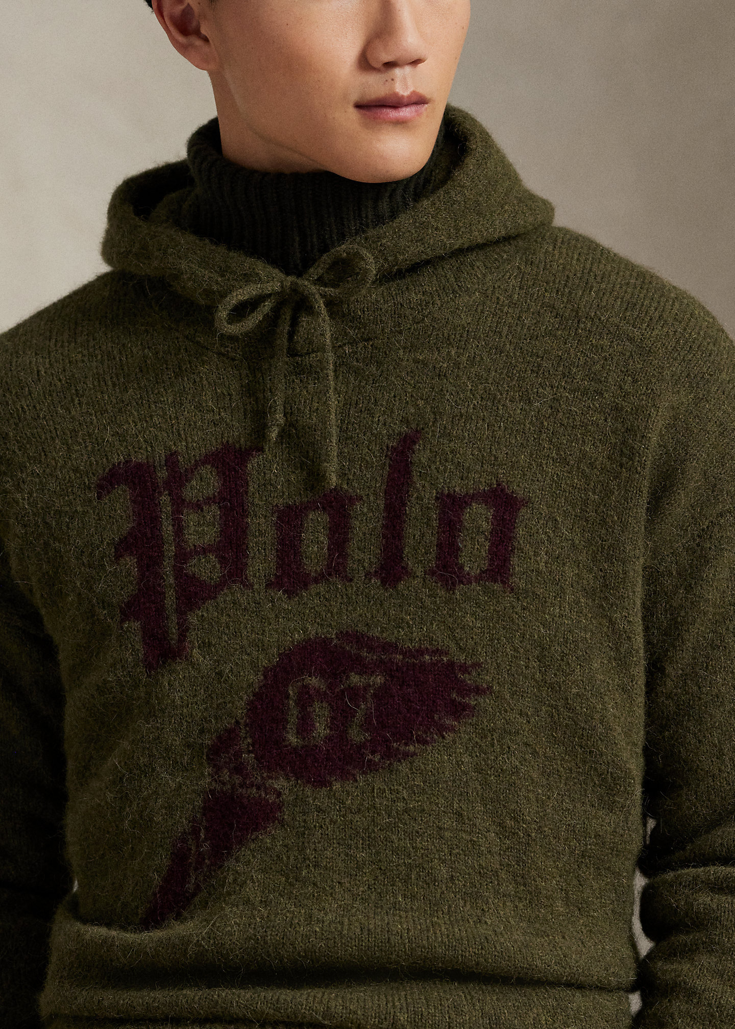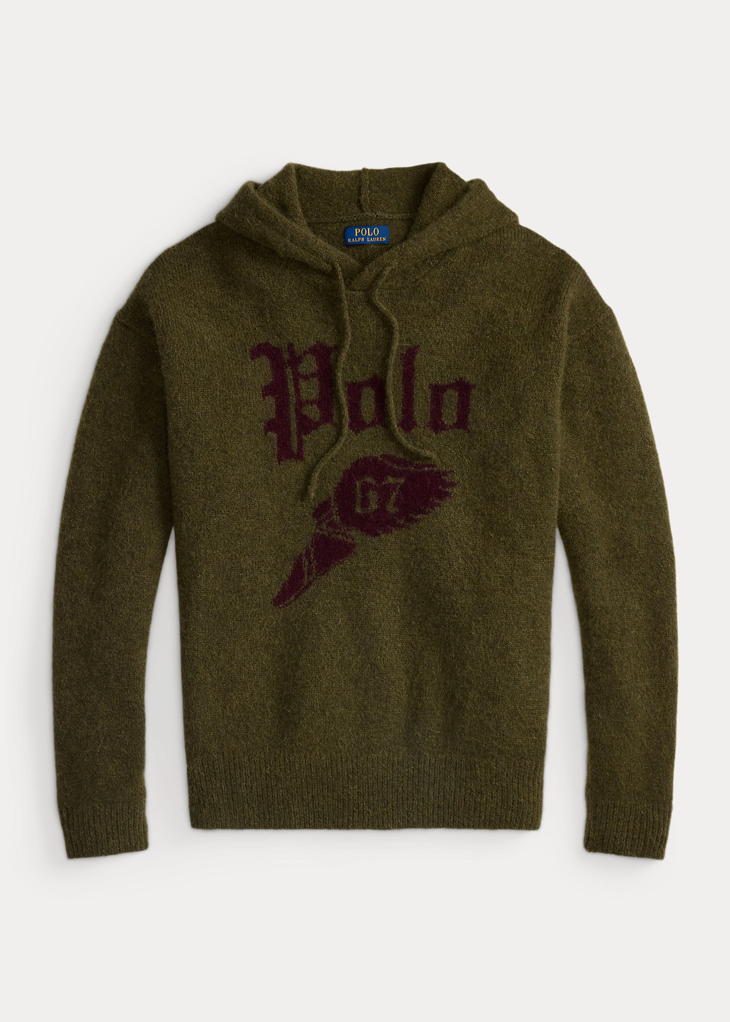 - Gothic “Polo” logo and “67” winged-foot graphic intarsia-knit at the center front.