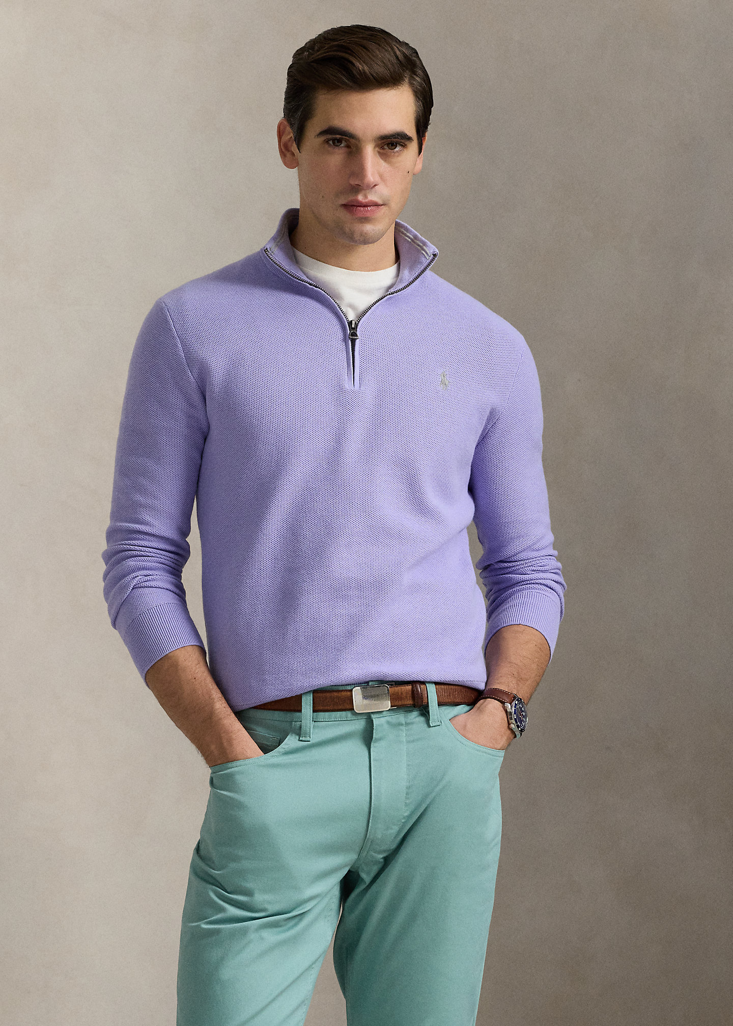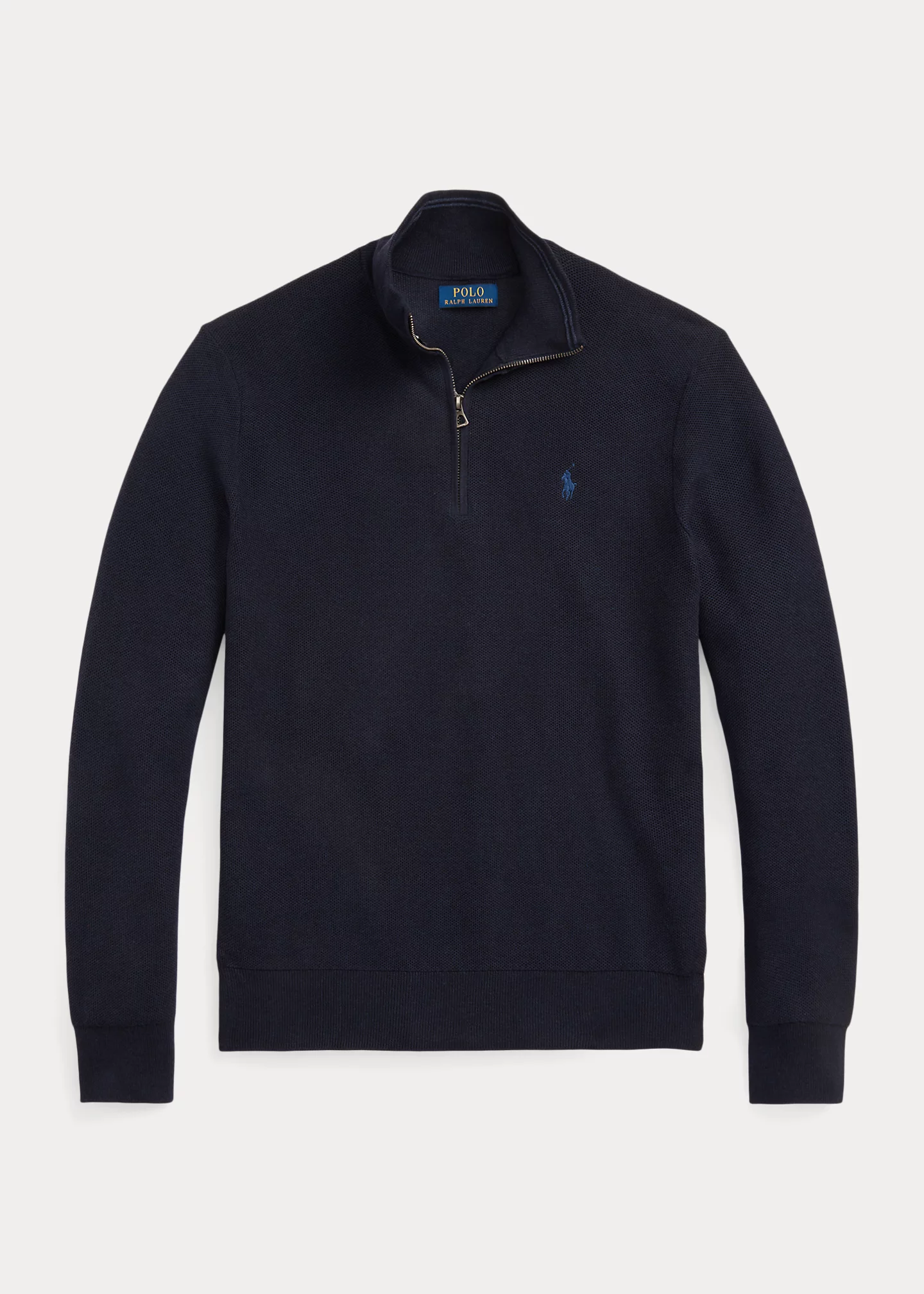 Mesh-Knit Cotton Quarter-Zip Sweater