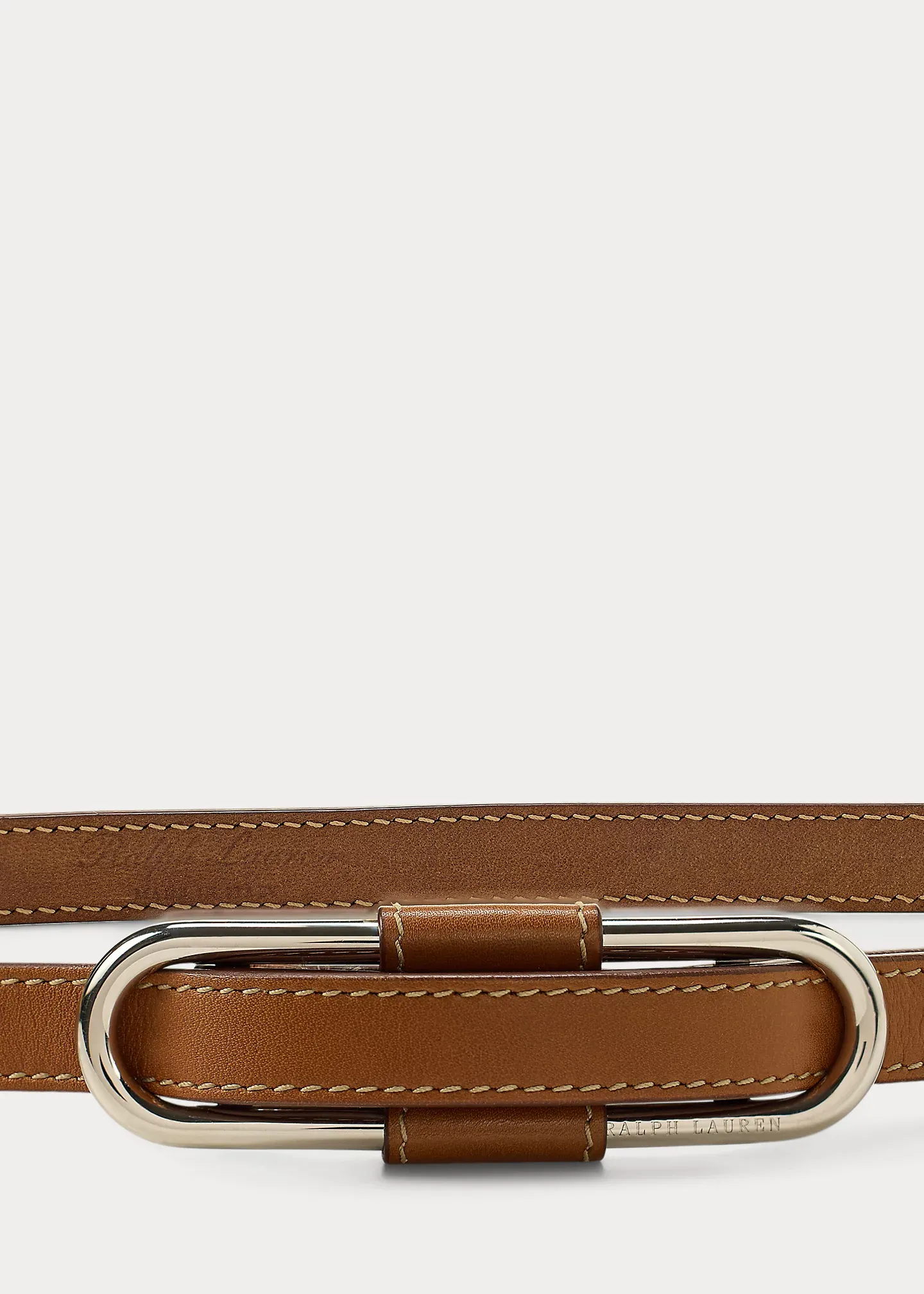 - Palladium-plated “ralthtph lauthtren”–engraved oval slider buckle.