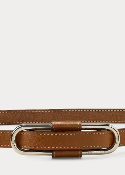 Oval-Buckle Calfskin Skinny Belt