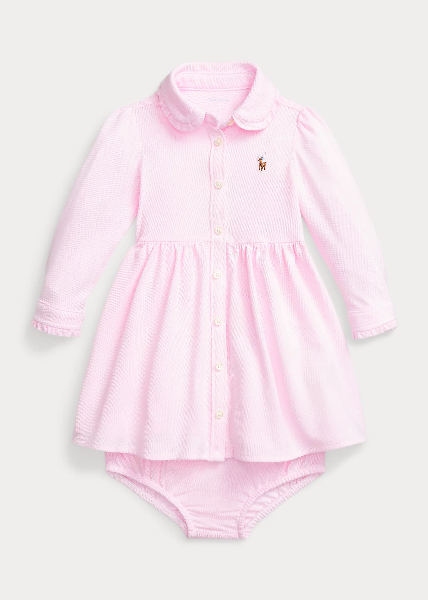 - Puffed long sleeves. Buttoned barrel cuffs with ruffle trim.