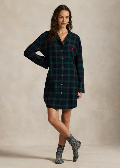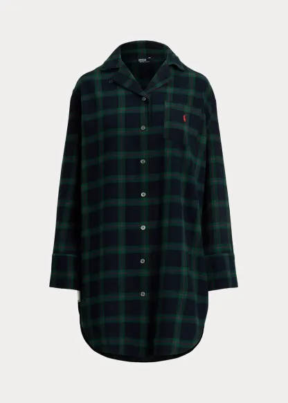 Plaid Cotton Flannel Sleep Shirt