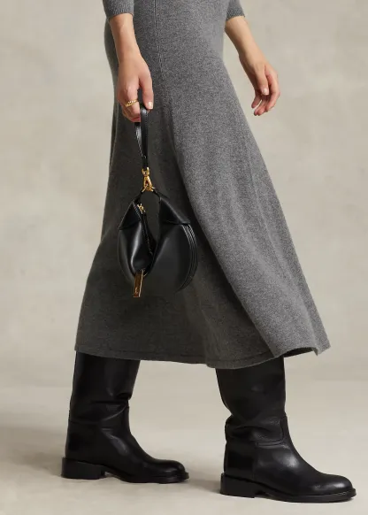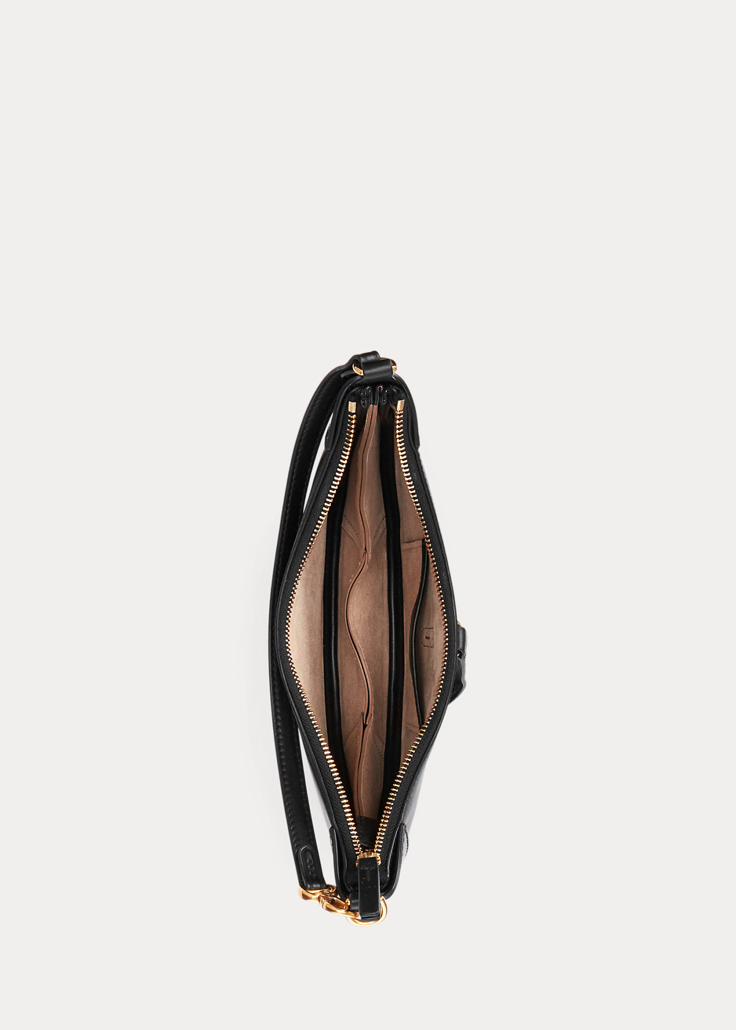 - Top zip closure with a leather zipper pull. Interior magnetic snapped closure. Leather keeper with a weighted Polo ID brass plaque that can be placed at the front, at the back, or tucked in.