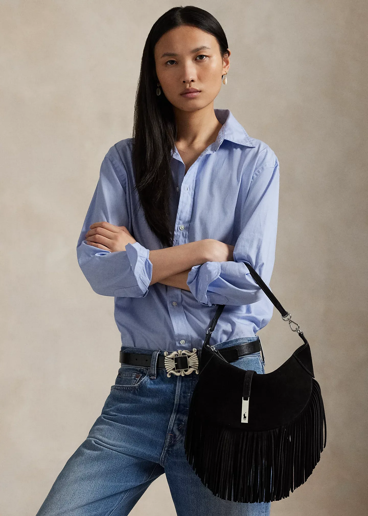 - Top zip closure with a leather zipper pull. Interior magnetic snapped closure. Leather keeper with a weighted Polo ID brass plaque that can be placed at the front, at the back, or tucked in.