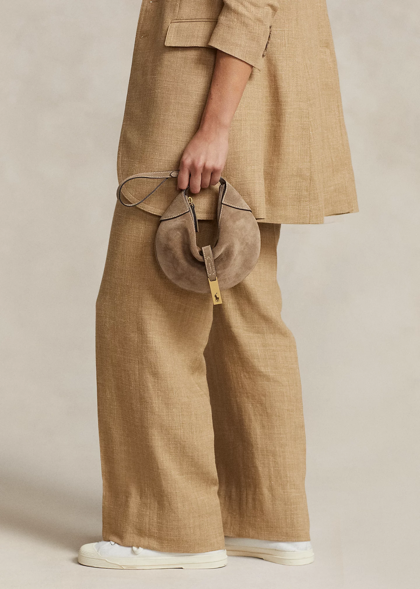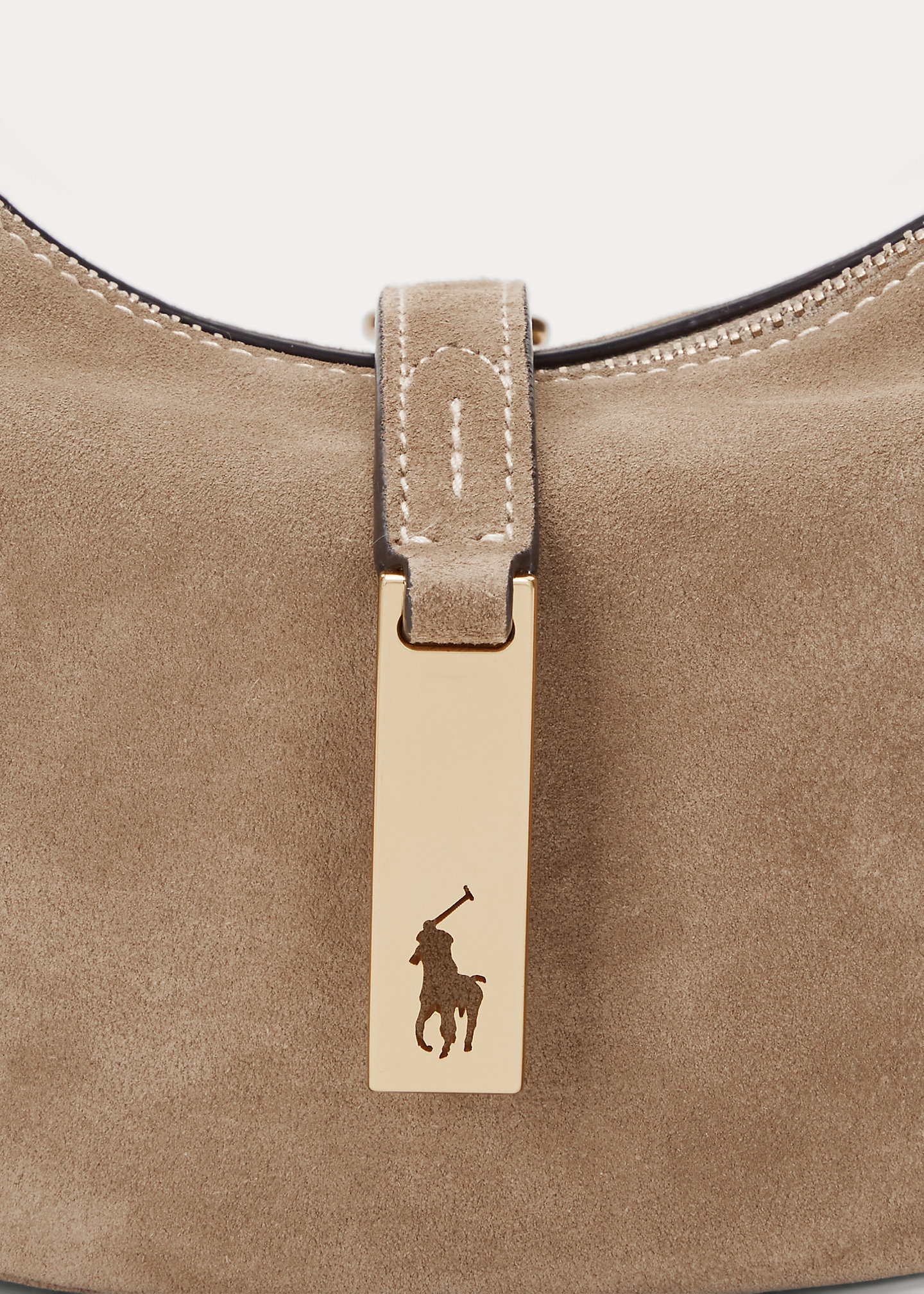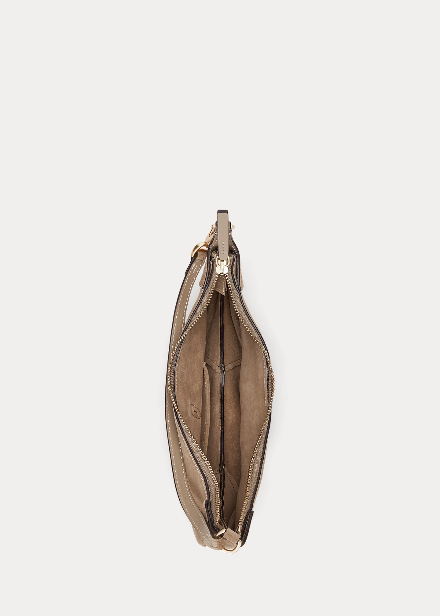 - Top zip closure with a leather zipper pull. Leather keeper with a weighted Polo ID brass plaque that can be placed at the front, at the back, or tucked in.