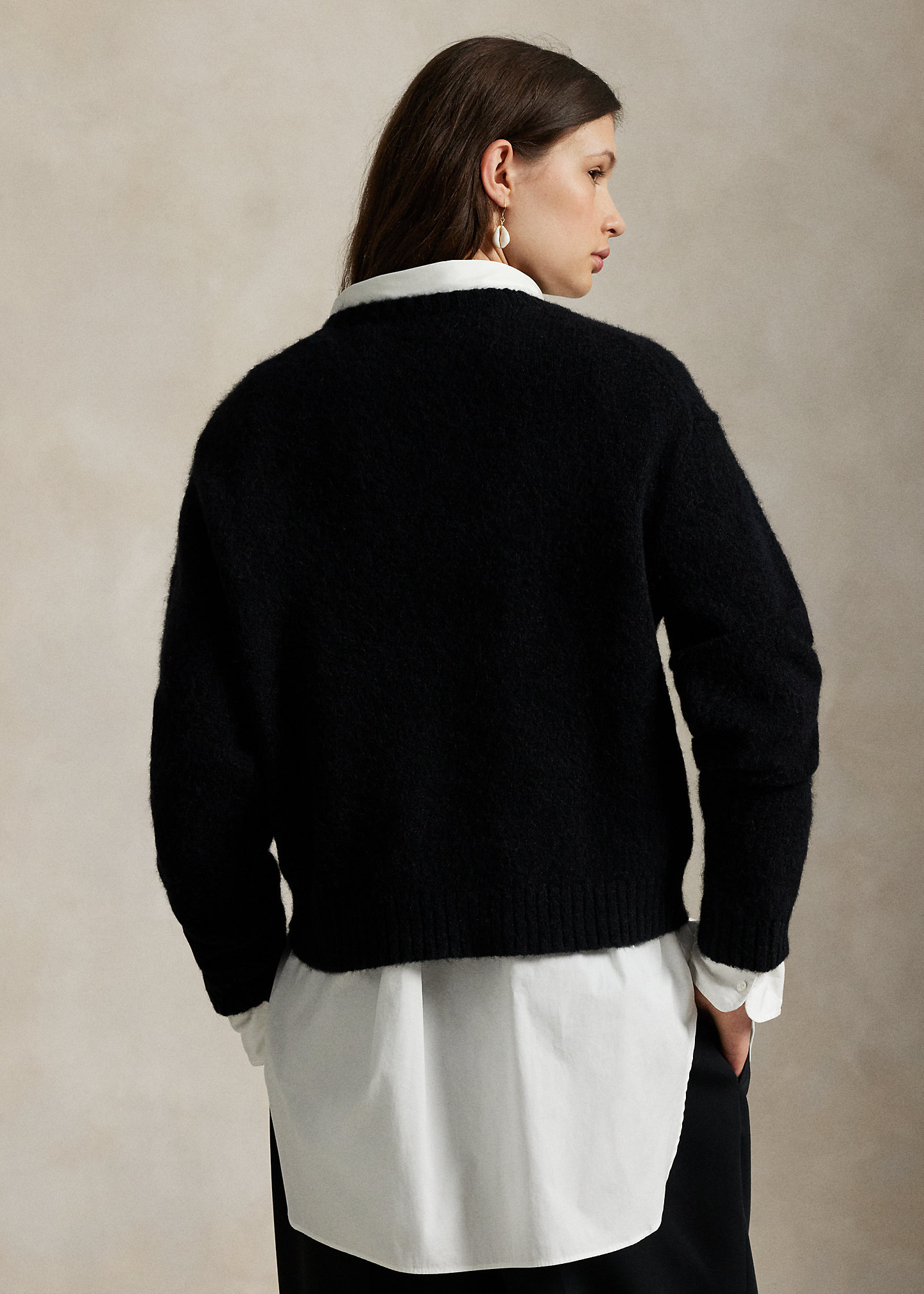 • Rib-knit crewneck.