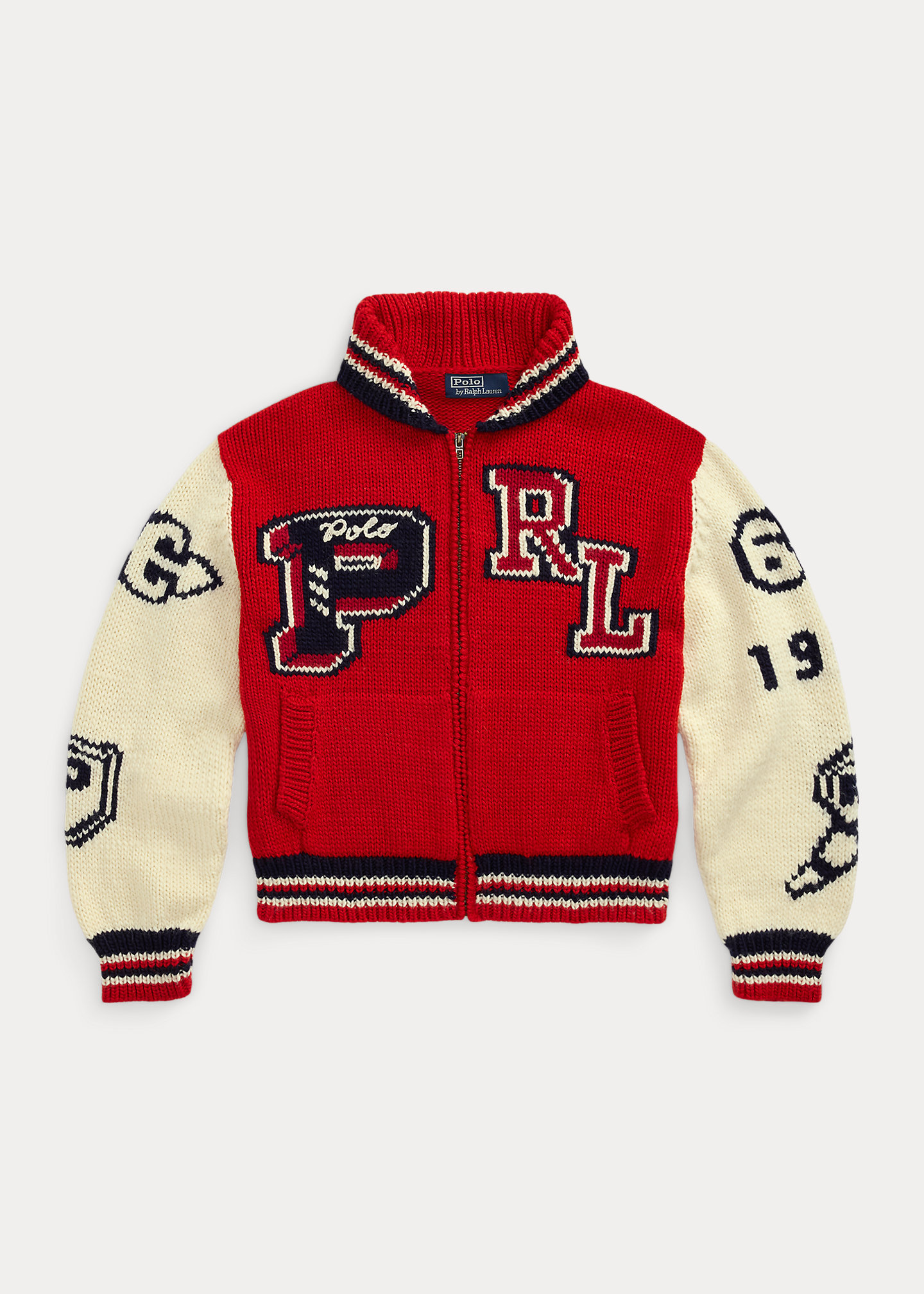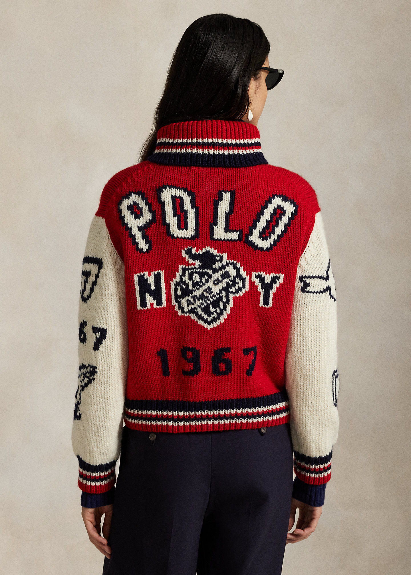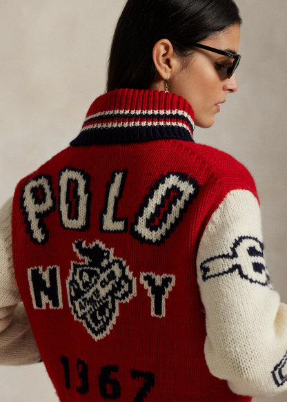 - Intarsia-knit “Polo NY 1967” and an “RL Athltc Club” crest hand-embroidered at the center back.