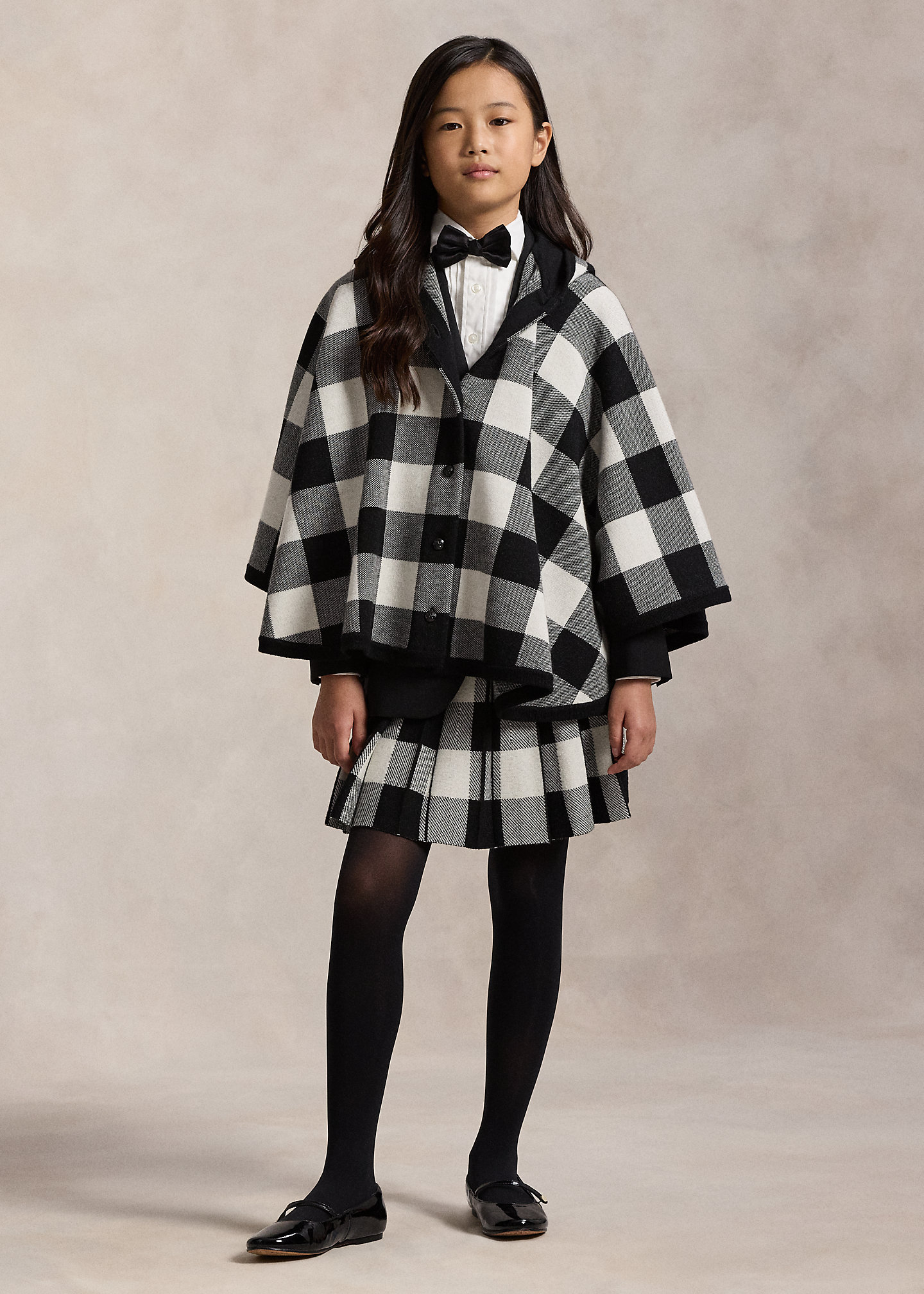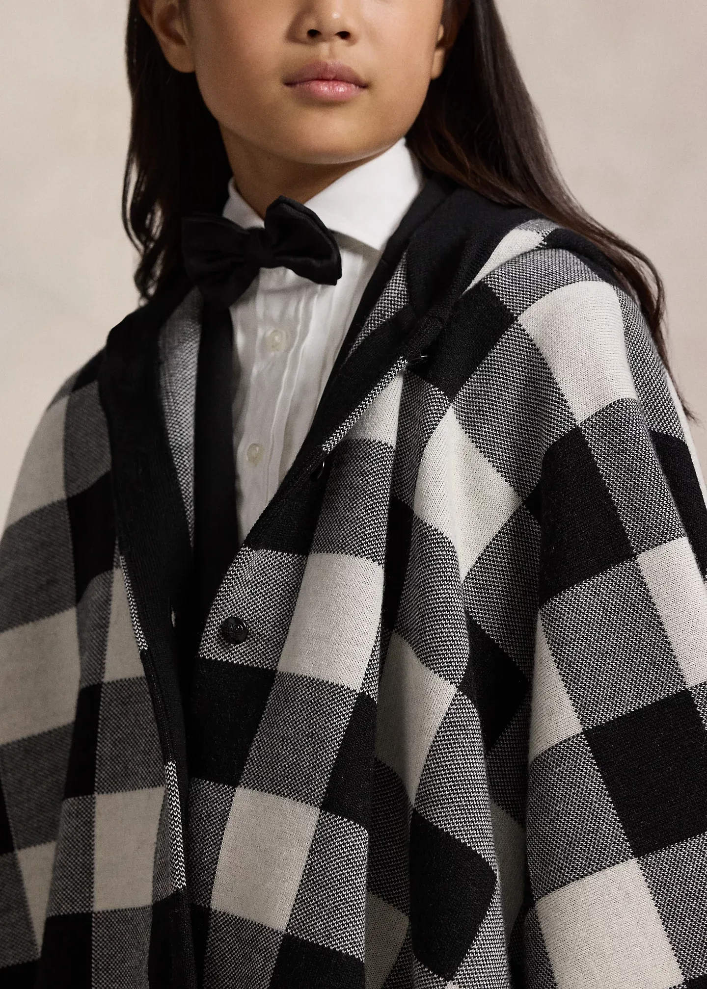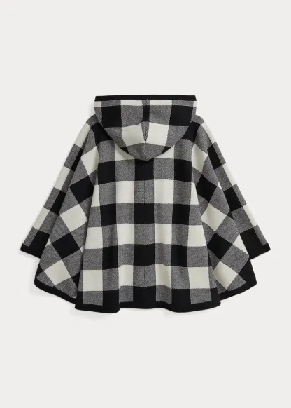 Checked Wool Hooded Poncho