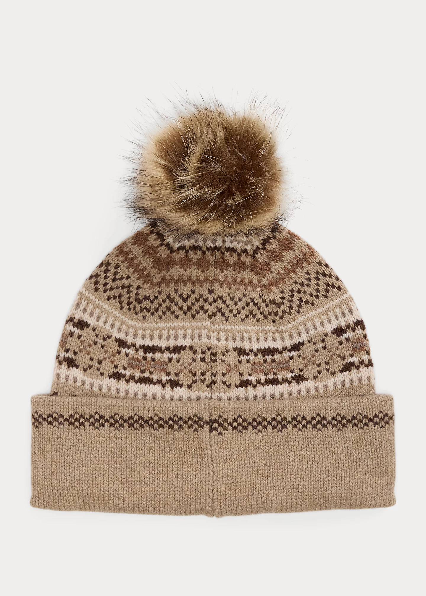 - Faux-fur pom-pom at the crown.