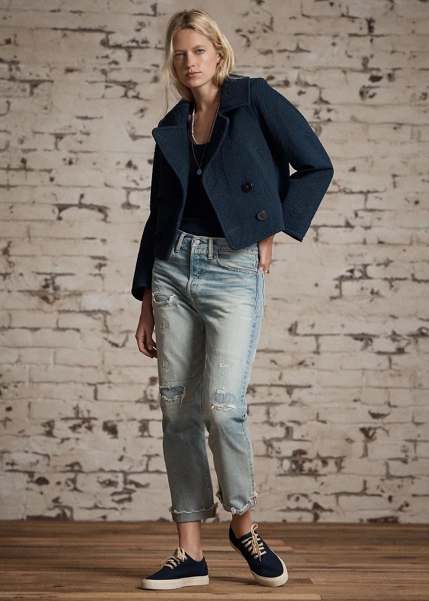 Quilted Jersey Cropped Peacoat