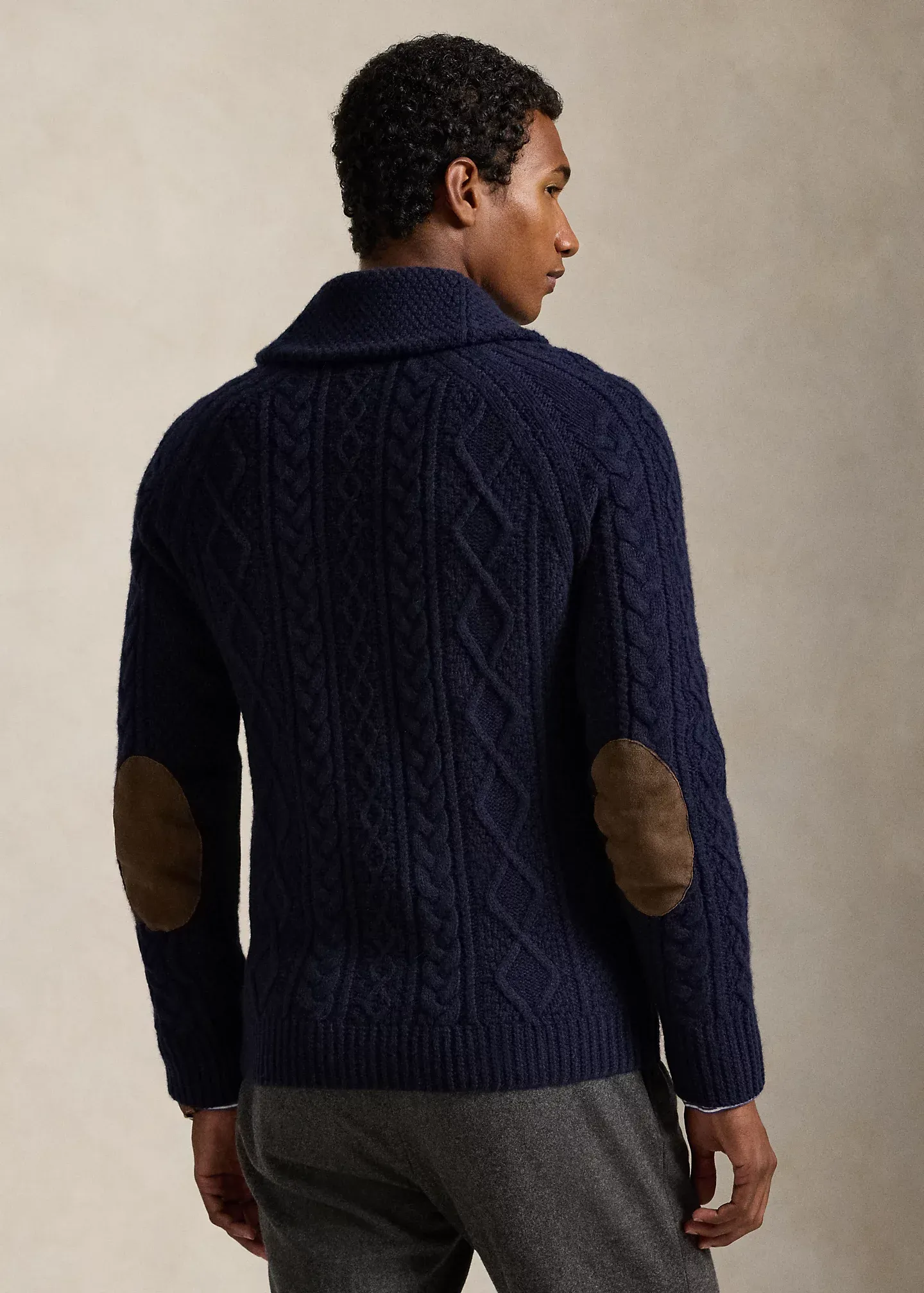 - Shell: 90% wool, 10% alpaca hair. Elbow patches: 100% lamb suede.