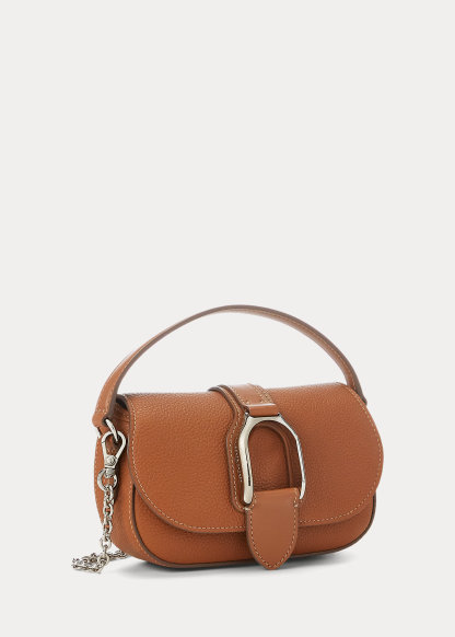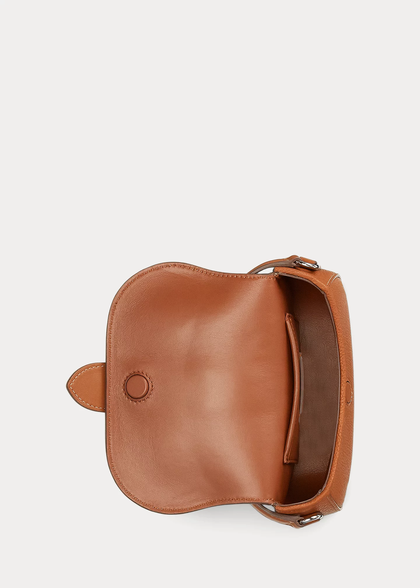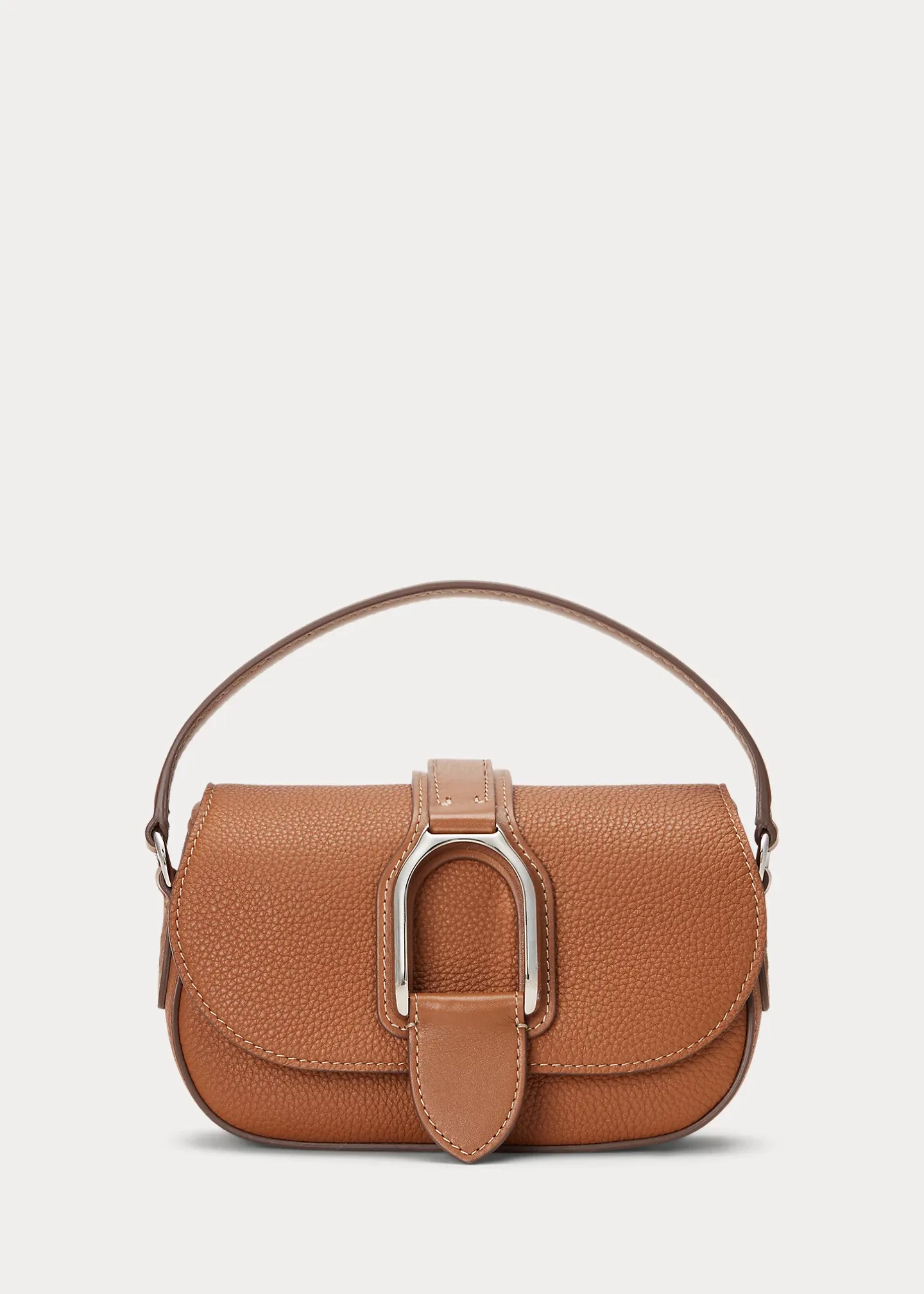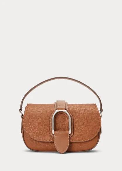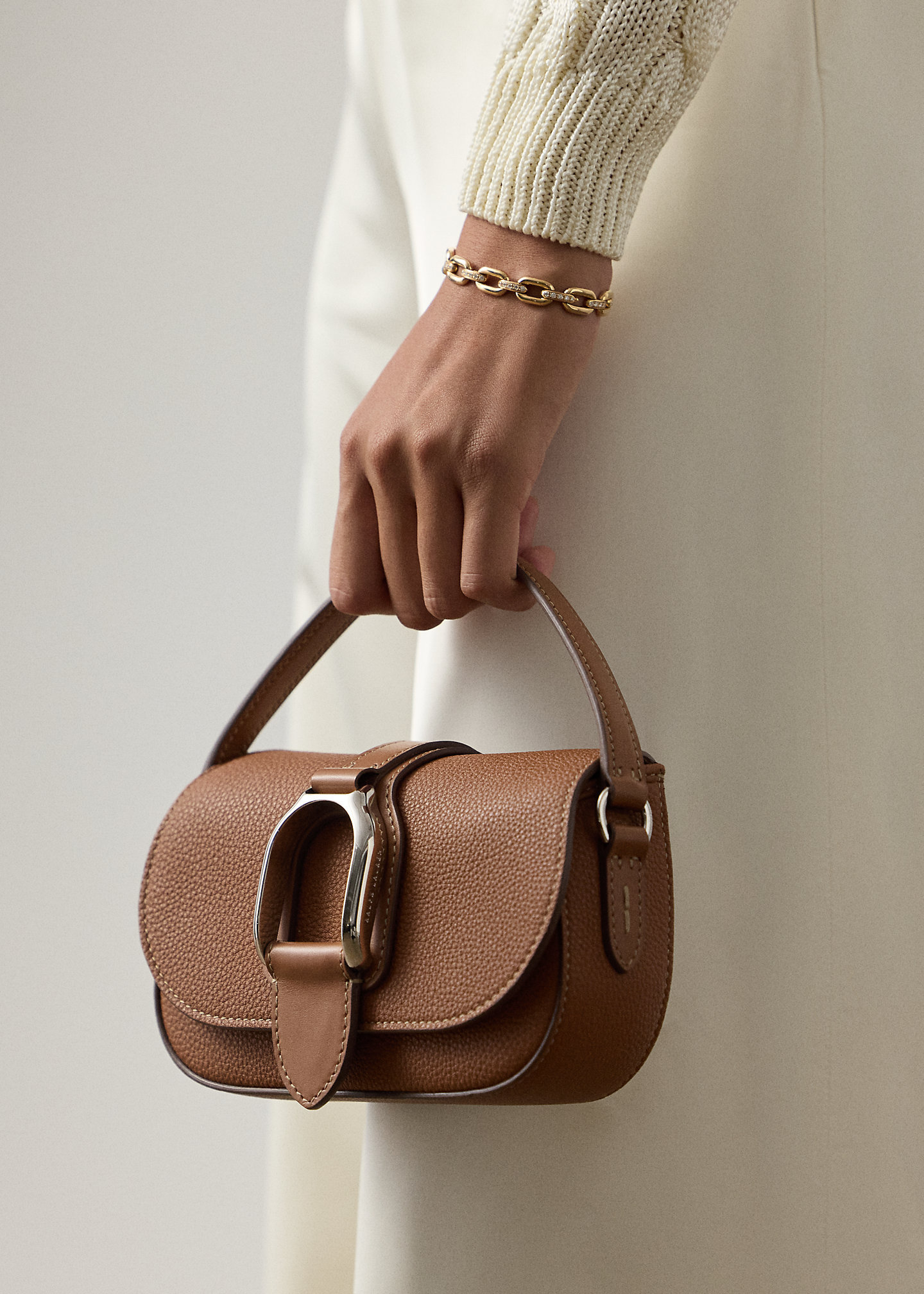 - Polished stirrup buckle at the front fold-over flap. Stirrup buckle engraved with “ralthtph lauthtren” at both sides.